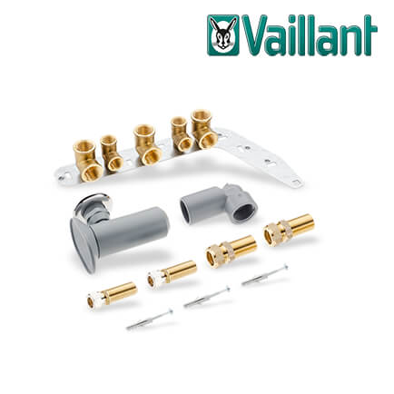 • Vaillant VC/VCW/VCI-Installations-Set Rohbaukonsole, UP – Montageblech mit Anschlusswinkeln Heizkreis 2 x Rp 3/4, Gas Rp 3/4